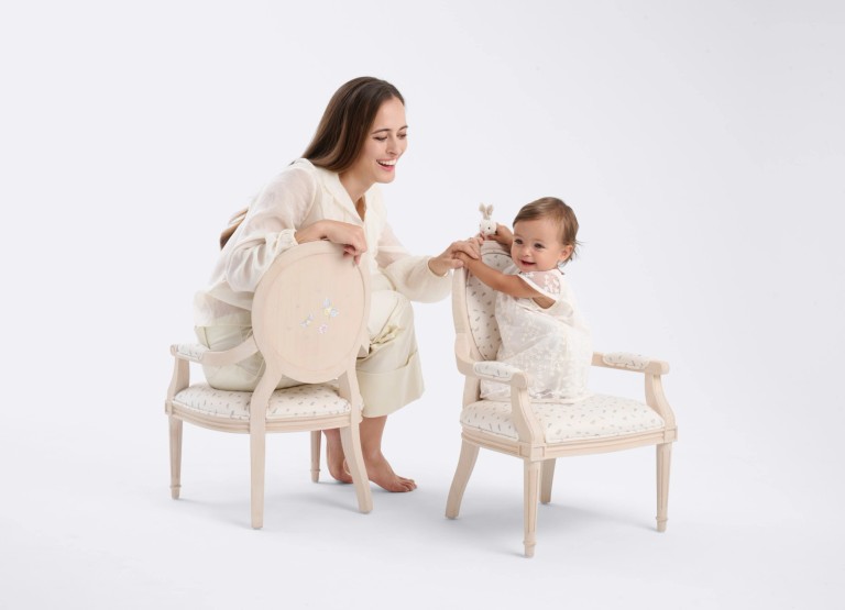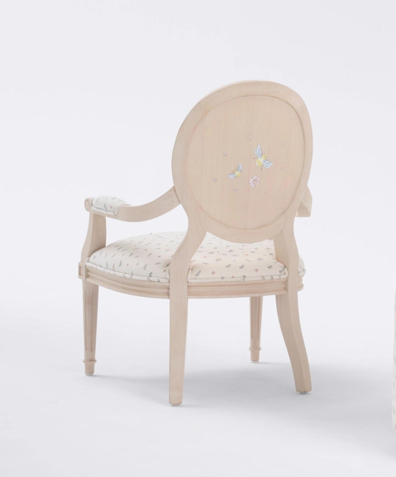 Featuring a hand-painted veneered back and Blossom fabric upholstery, this royal armchair brings refined craftsmanship and gentle floral storytelling to nursery seating.