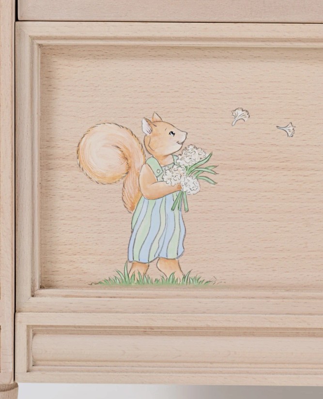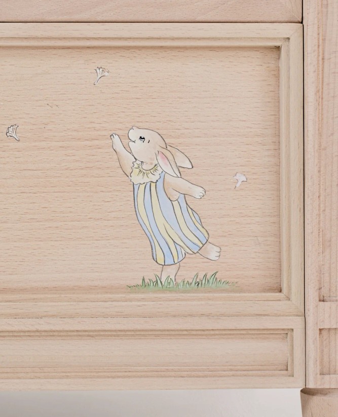 Softly painted in Blush White and detailed with hand-painted Dandelion Dream characters, this cot bed brings gentle storytelling and timeless charm to the nursery, while adapting to your child as they grow.