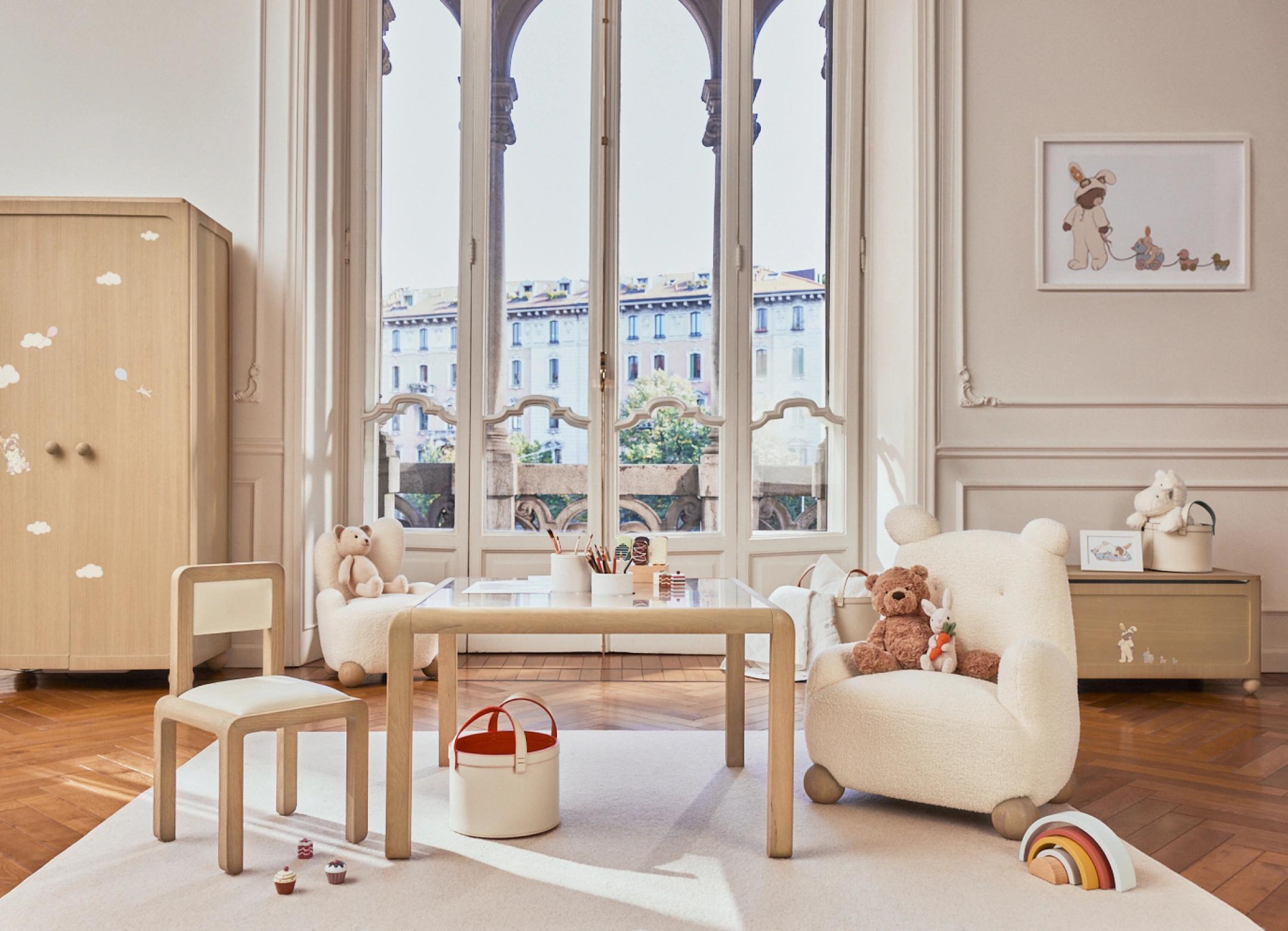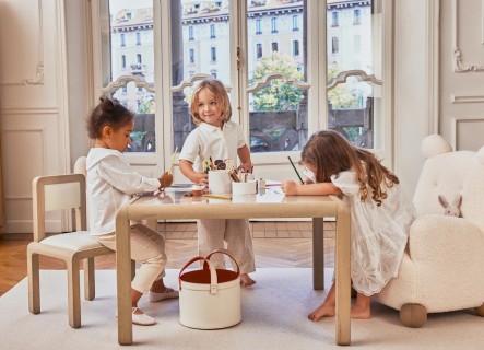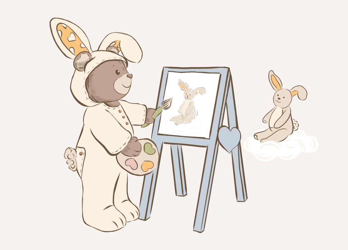 This drawing table features hand-painted Button & Bunny detailing and a durable surface, creating an inspiring and practical space for creativity.