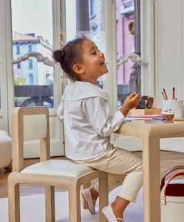 The Honey Cot Drawing Table – Button & Bunny transforms everyday play into moments of creativity. Hand-painted motifs add charm, while the durable tabletop is designed for drawing, crafting and learning. Finished in a warm honey tone, it marries practicality with playful design.