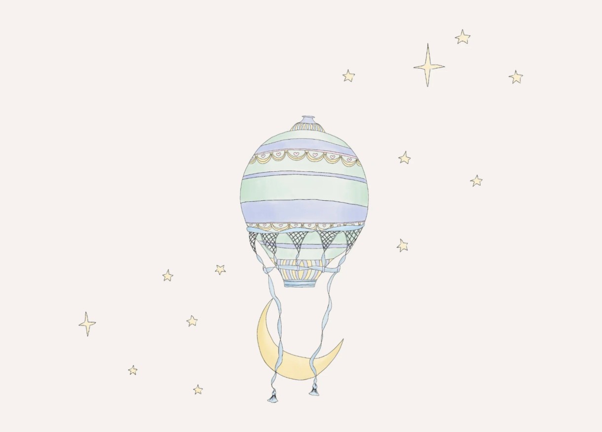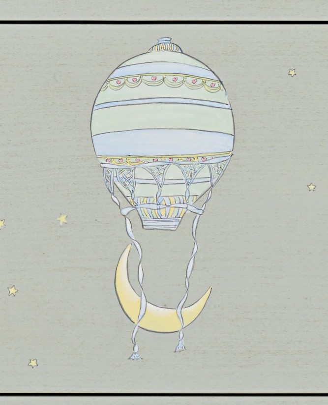 This elegant chest of drawers features hand-painted Moonlight Voyage motifs and a soft Silky Sage finish, offering generous storage while bringing calm, storybook charm to the nursery.