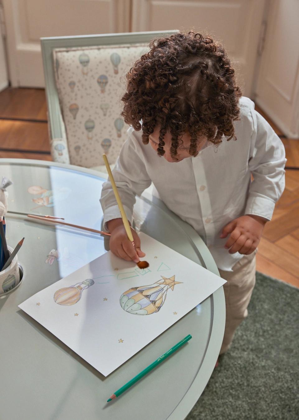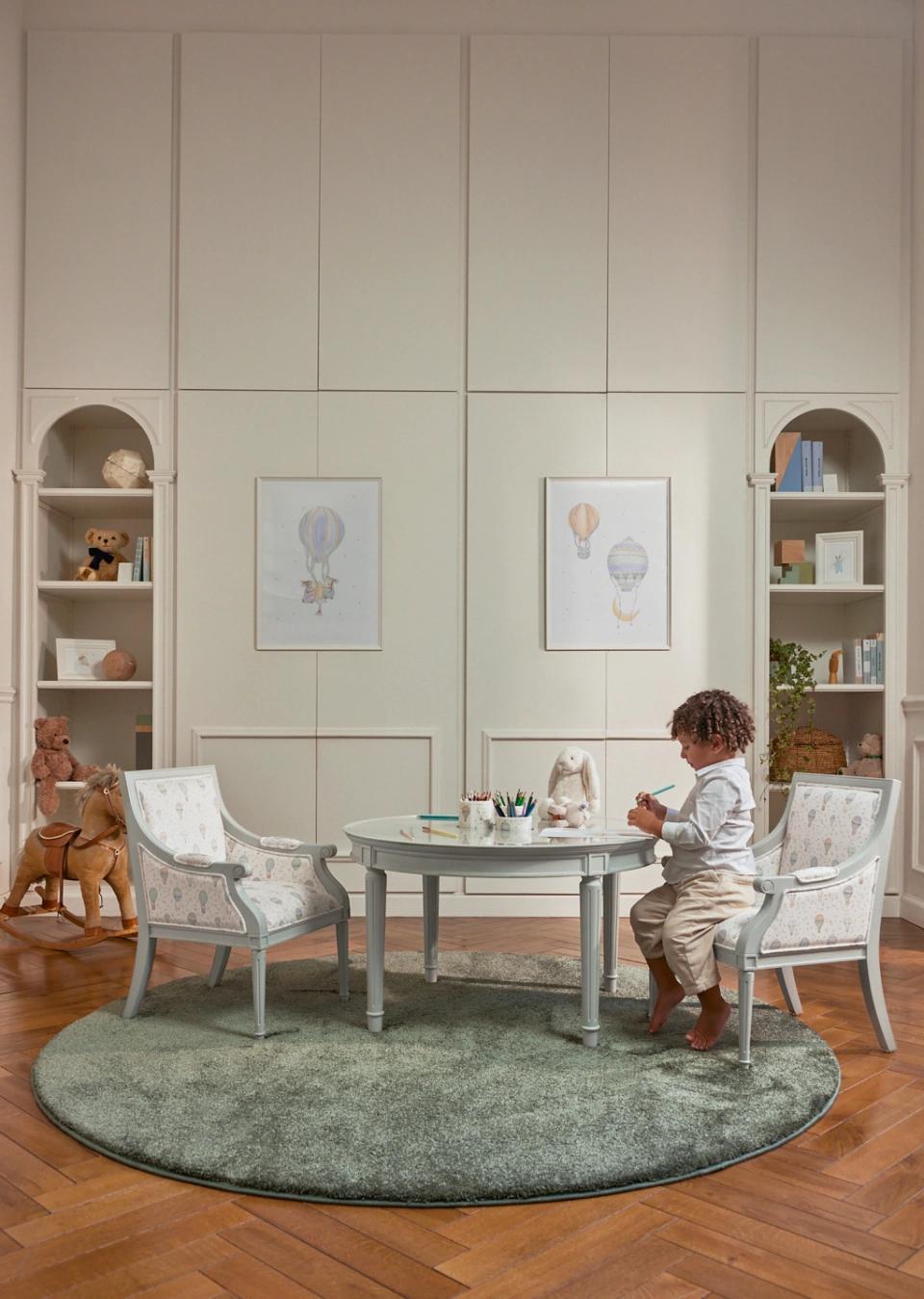 The Heritage Haven Royal Armchair in Moonlight Voyage brings comfort and storytelling together in a beautifully crafted silhouette. Upholstered in Moonlight Voyage fabric featuring celestial motifs, it offers a soft, supportive seat. Finished in calming Silky Sage, it is designed for quiet moments of reading, bonding and rest.