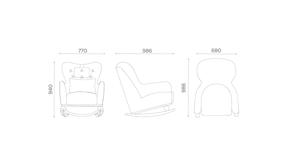 This soothing rocking armchair features a refined silhouette and Blush White finish, creating a calm and comfortable seating space for feeding, bonding and rest.