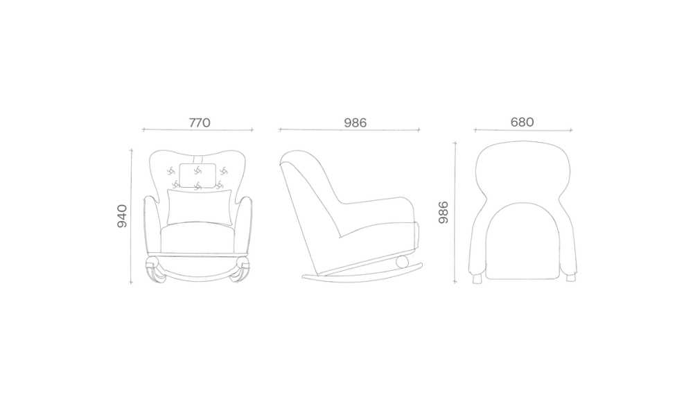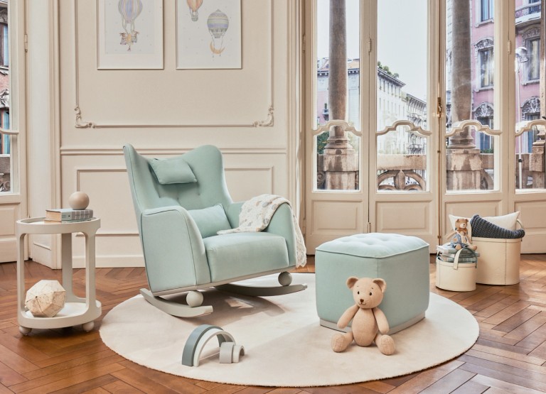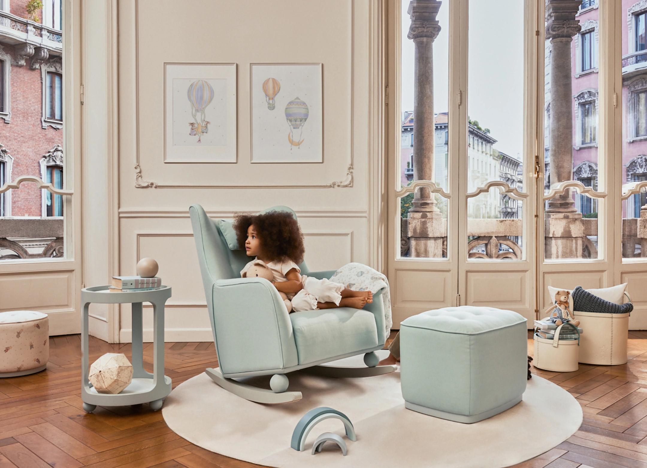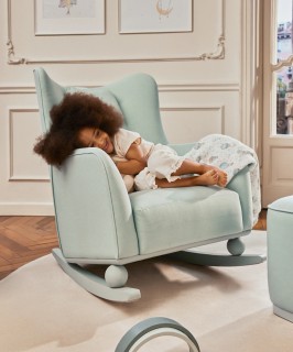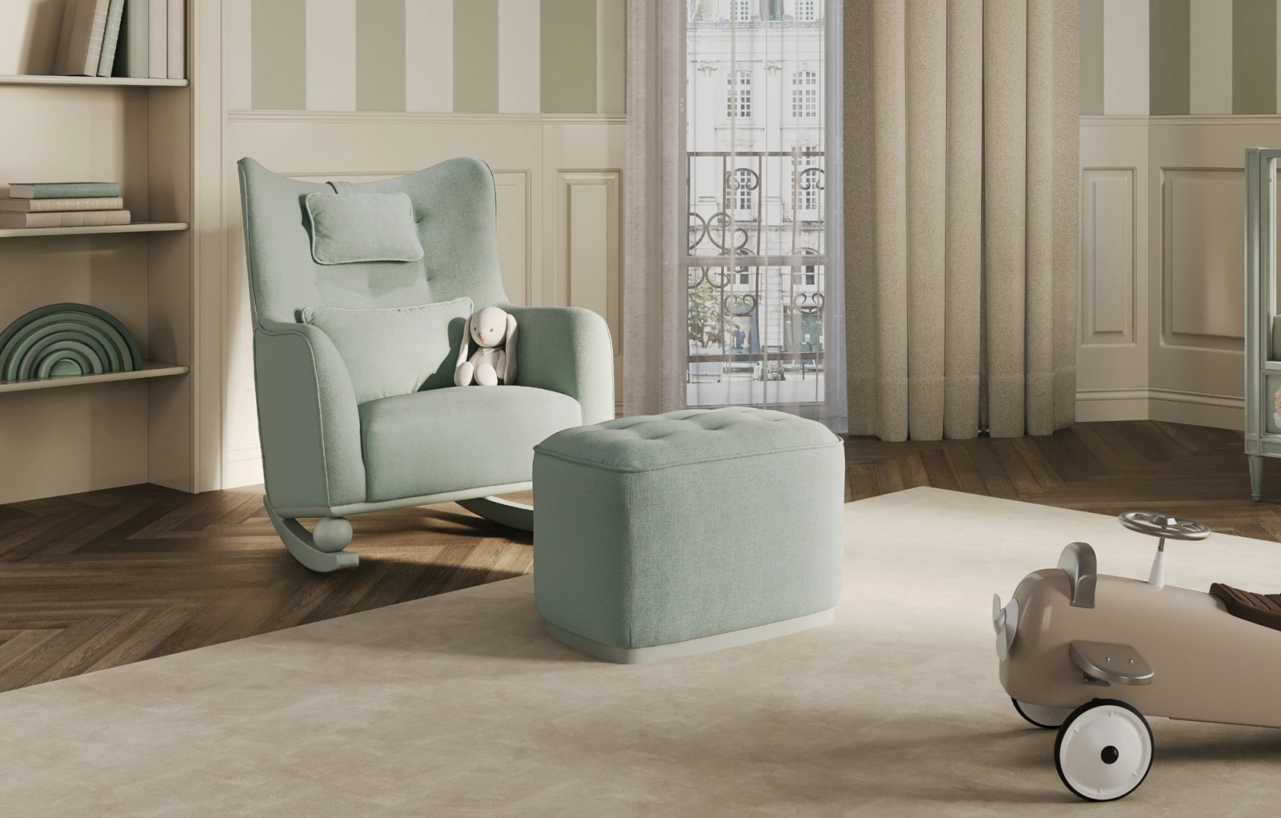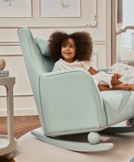 This soothing rocking armchair features a refined silhouette and Silky Sage finish, creating a calm and comfortable seating space for feeding, bonding and rest.