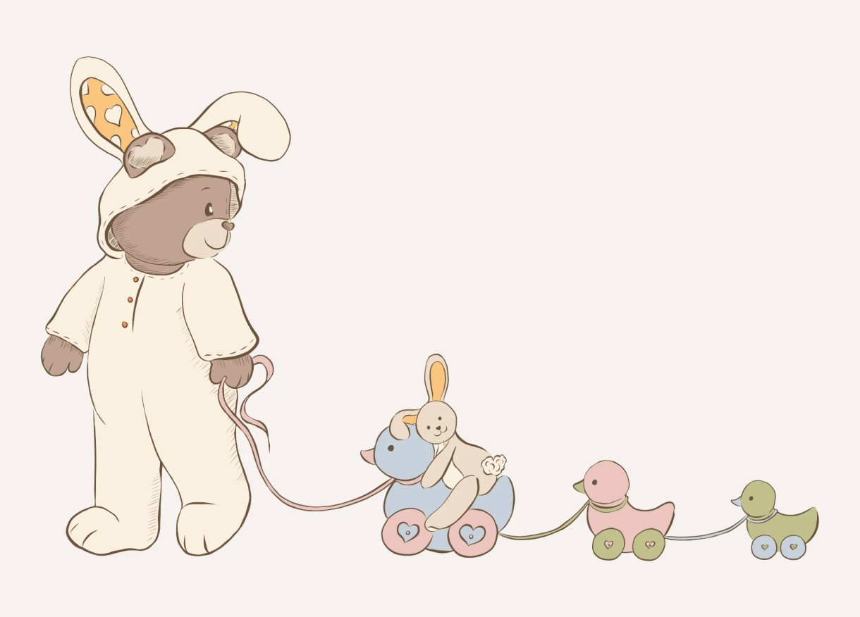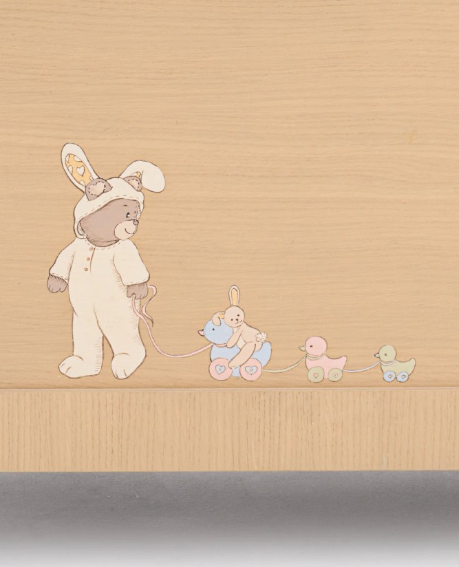 This charming storage trunk features hand-painted Button & Bunny characters and a soft-close lid, offering a warm and practical home for childhood treasures.