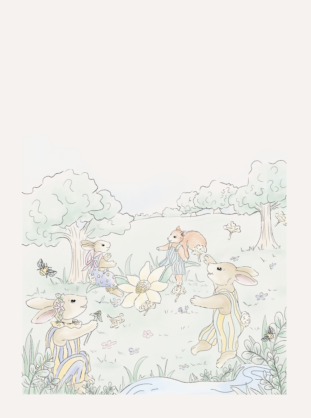 The Dandelion Dream collection captures the subtle magic of childhood imagination, adorned with drifting dandelion parachutes and enchanting storybook characters. Light hues and hand-painted details shape a curious and adventurous world, designed for making wishes, hatching plans and dreaming big.